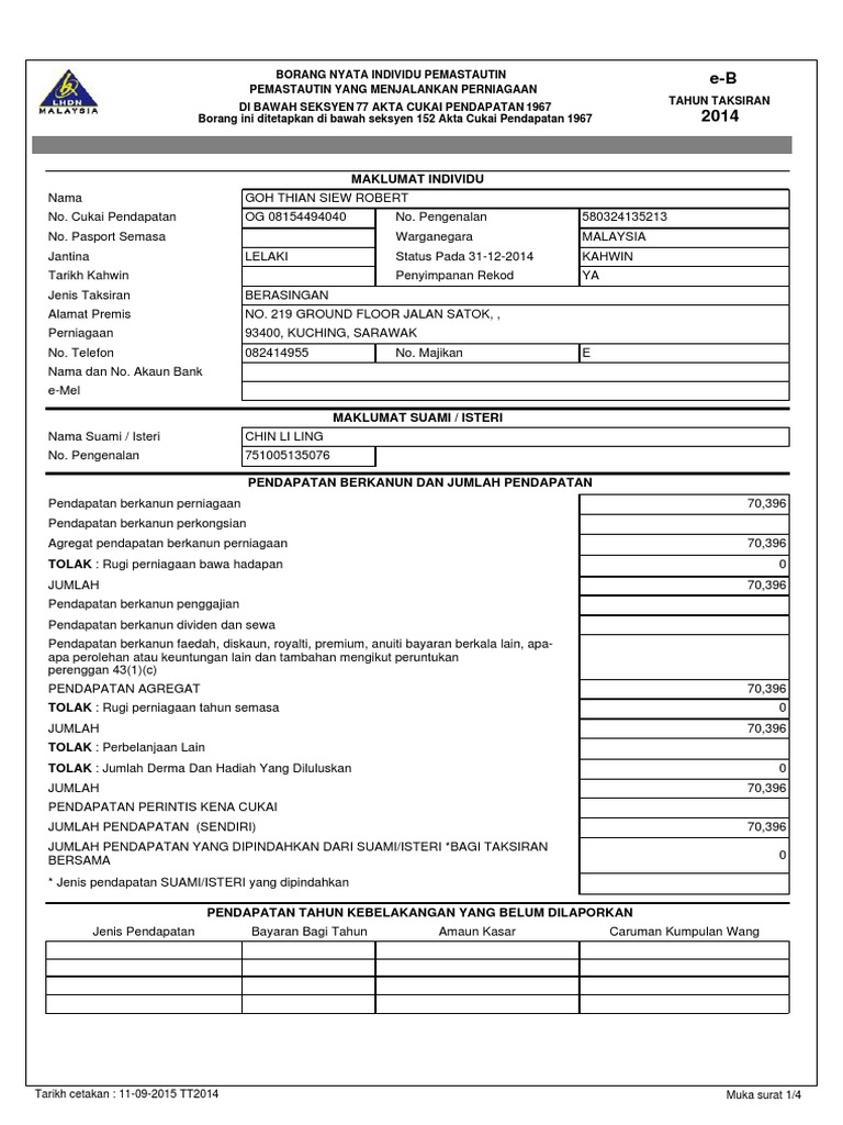 Gatal Gatal Tangan Nak Menaip Cara Cara Isi Borang E Be Cukai Pendapatan