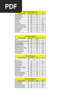 Tabel Daftar Kalori Makanan Dan Minuman Sehari Hari Samyunwan Samyun Wan Sam Yun Wan