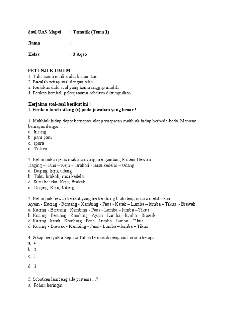 Soal Uas Kls 3 Tematik Tema 1