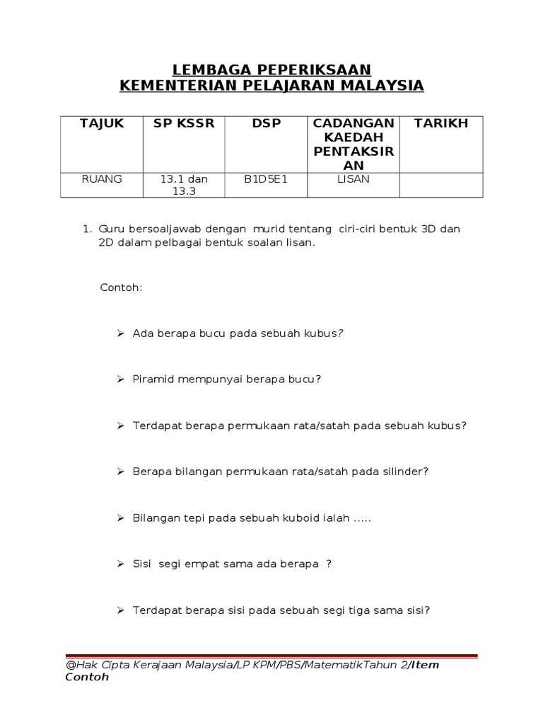 Latihan Bentuk Ruang Pdf Document